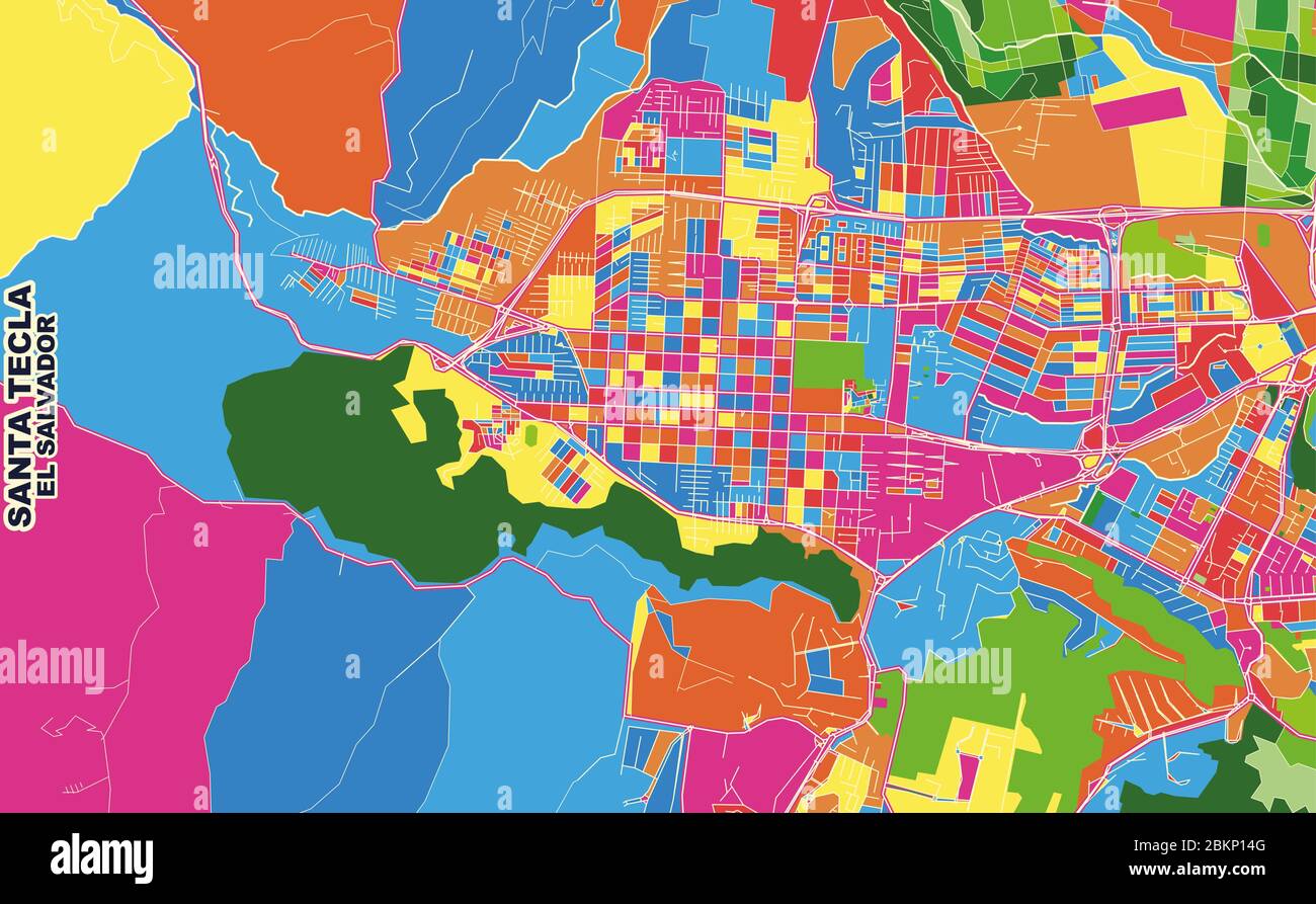 Colorful Vector Map Of Santa Tecla La Libertad El Salvador Art Map Template For Selfprinting Wall Art In Landscape Format Stock Vector Image Art Alamy