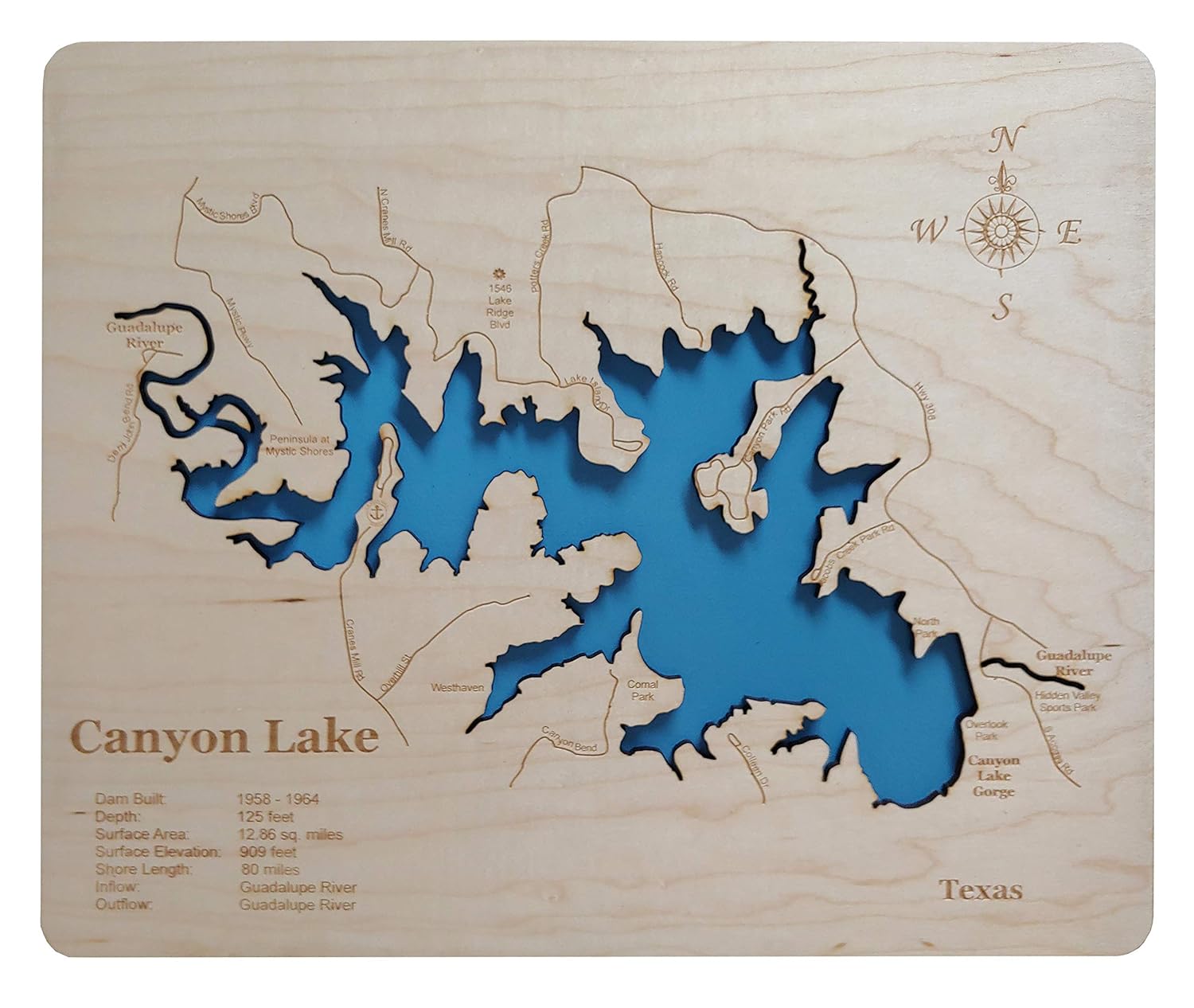 Amazon Com Canyon Lake Texas Standout Wood Map Wall Hanging Handmade